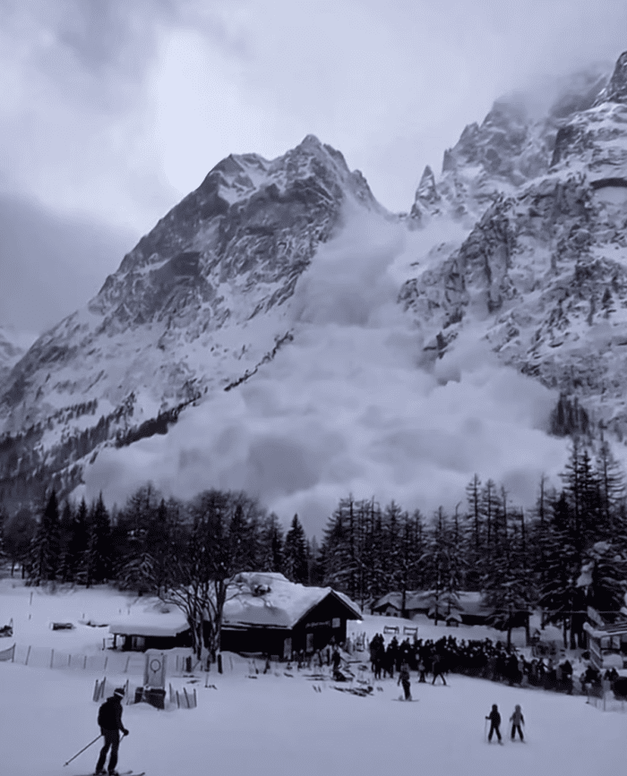 Инцидент произошёл недалеко от горнолыжного курорта Курмайор, в альпийском регионе Валь-Вени. На видео, которое быстро разошлось по социальным сетям, видно, как группа лыжников спокойно стоит у кресельного подъёмника на противоположной стороне склона и наблюдает за происходящим. Сначала лавина кажется далёкой и почти «красивой» — снежная масса медленно срывается с вершины и начинает набирать скорость.