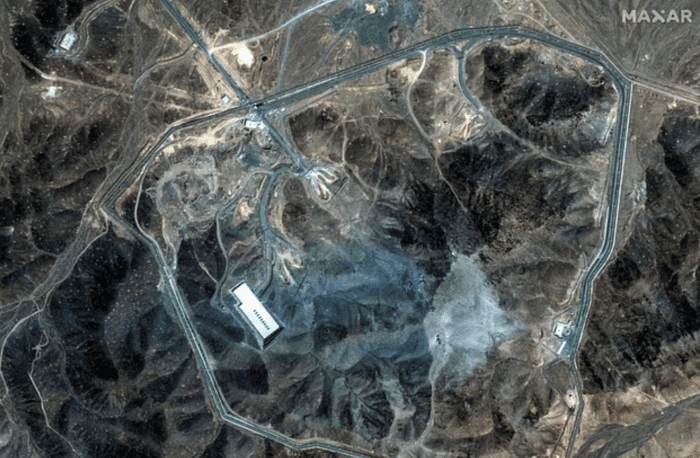 На спутниковом снимке виден подземный комплекс Фордо после того, как в июне прошлого года США нанесли удар по подземному ядерному объекту недалеко от Кума, Иран.