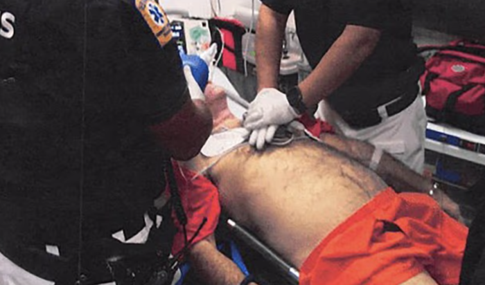 Медик делает искусственное дыхание и непрямой массаж сердца Джеффри Эпштейну после того, как его нашли повешенным в камере в столичном исправительном центре (MCC) в Нью-Йорке