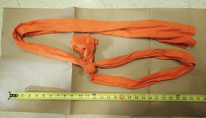 На месте смерти Эпштейна была обнаружена оранжевая ткань. Петля, которую предположительно использовал финансист, так и не была официально идентифицирована.